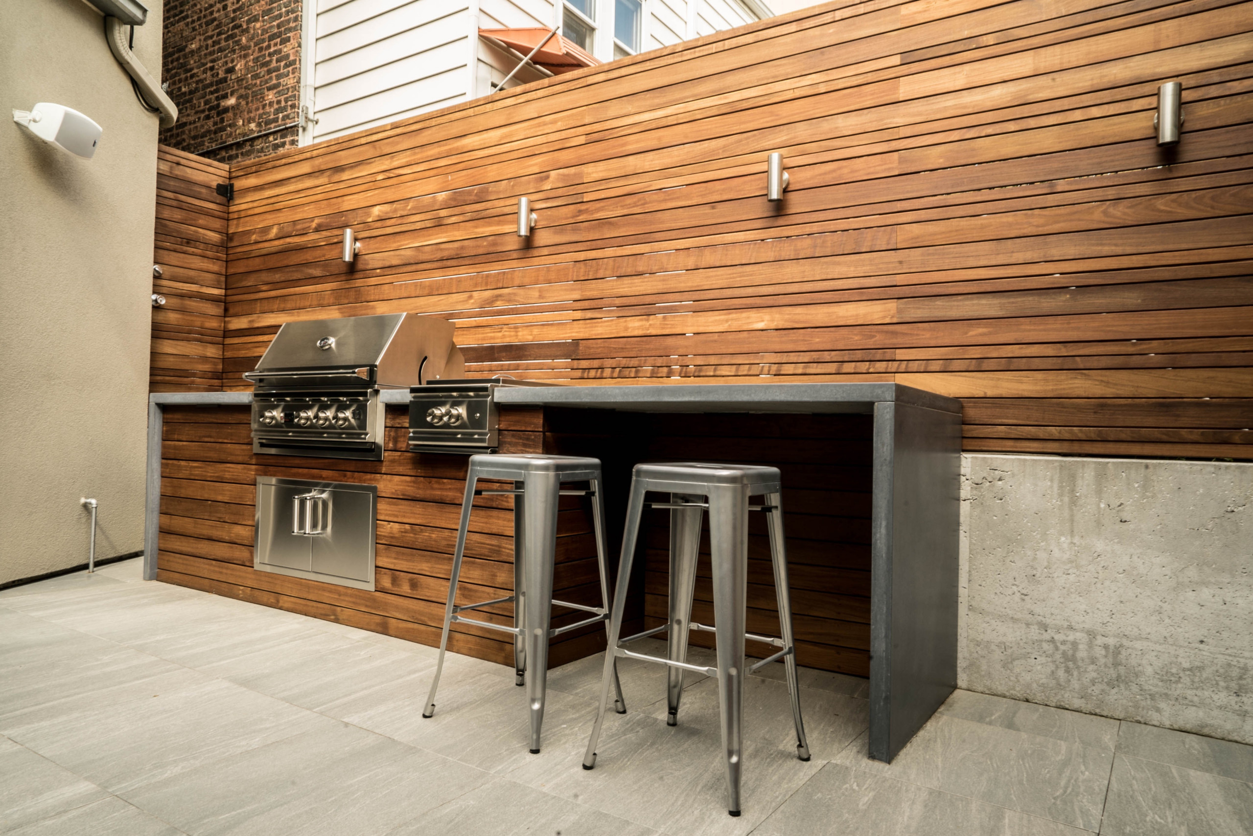 Inspiration for a mid-sized transitional backyard tile patio kitchen remodel in Orange County with no cover
