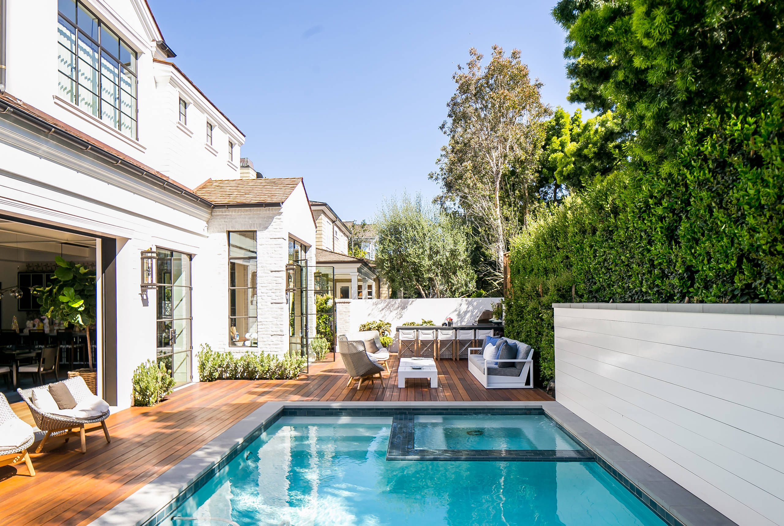 Inspiration for a transitional rectangular pool remodel in Los Angeles with decking