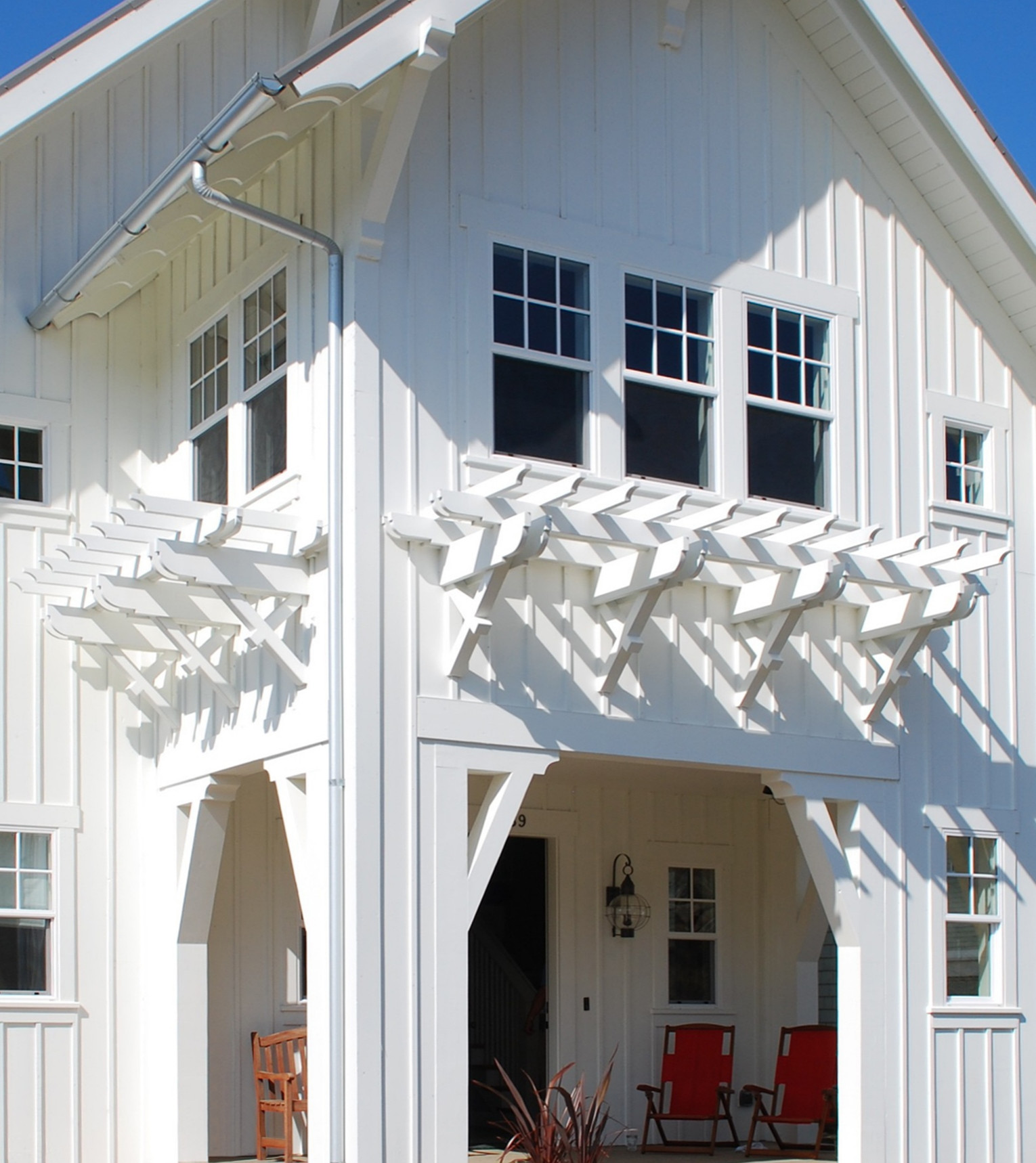 Mid-sized beach style front porch photo in Portland with decking and a roof extension by | Outdoor Photos | Porch | Landscaping | Landscape Design | Outdoor Living Space | Porch Design Ideas | Outdoor Living Space Ideas | Backyard Design