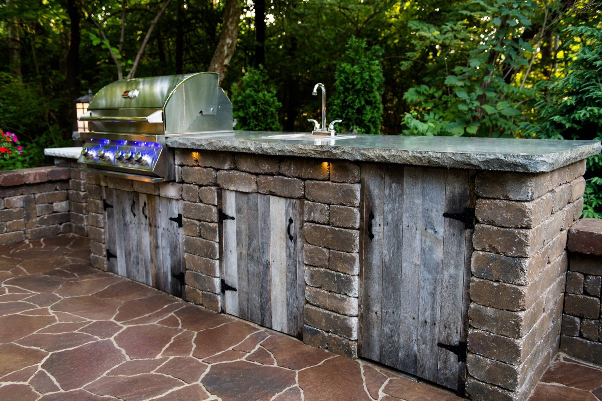 Small country backyard concrete paver patio kitchen photo in St Louis with no cover